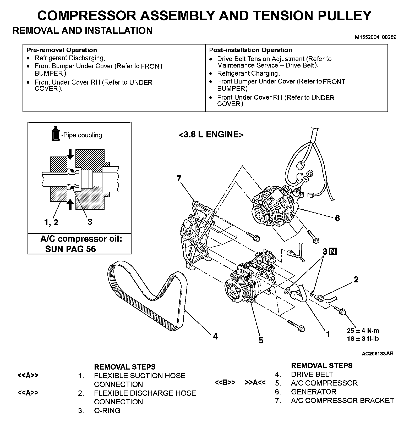 COMPRESSOR ASSEMBLY AND TENSION PULLEYREMOVAL AND INSTALLATION