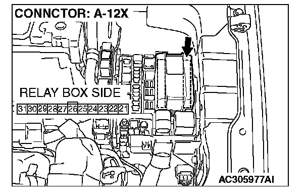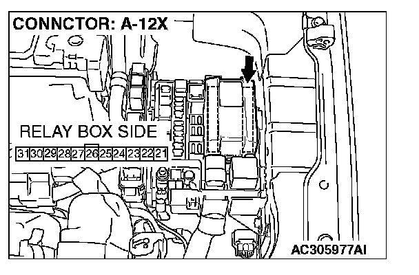STEP 5. Check front-ECU connector A-12X for loose, corroded or damaged terminals, or terminals pushed back in the connector.