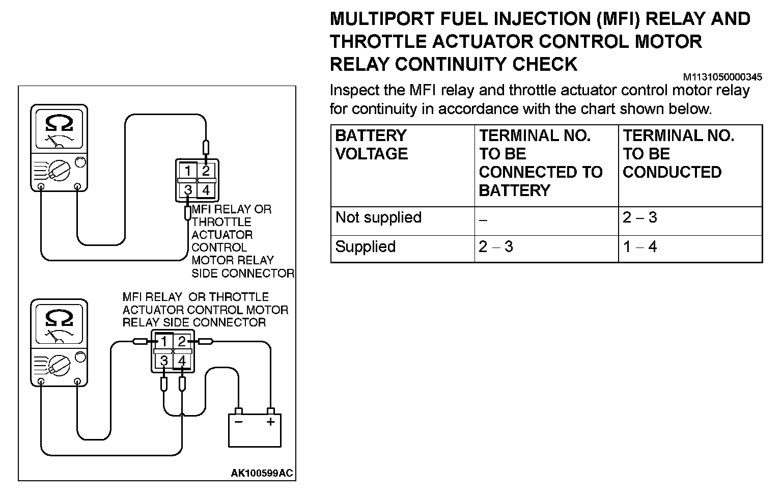 Main Relay (Computer/Fuel System): Testing and Inspection