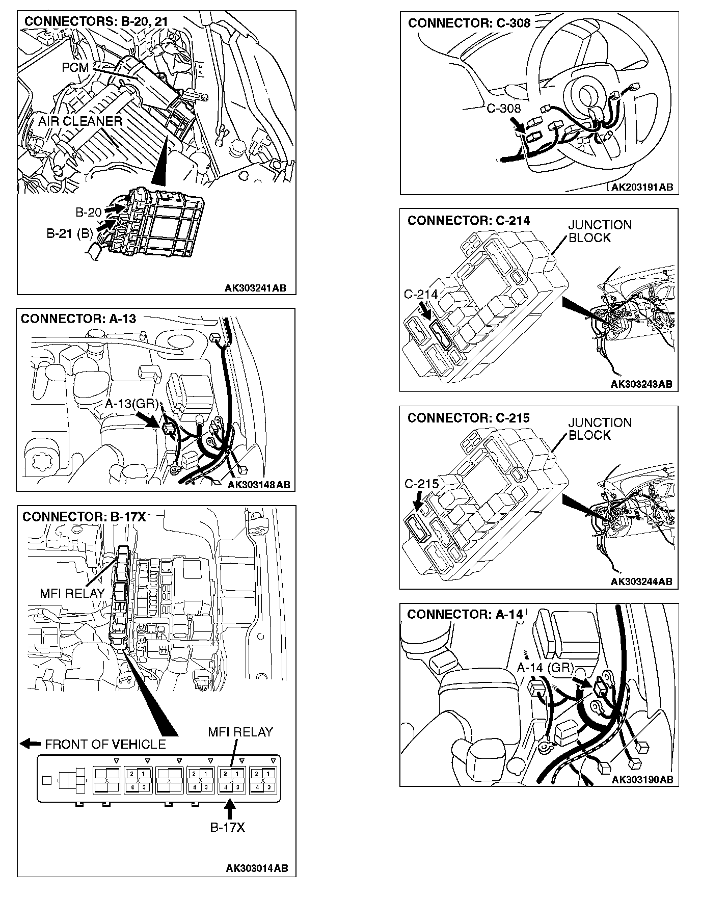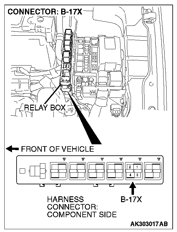 STEP 1. Check harness connector B-17X at MFI relay for damage.