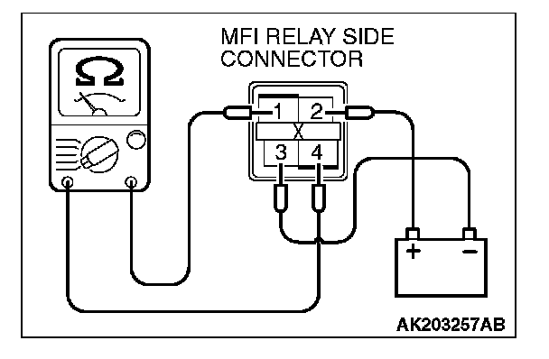 2. Check for continuity between the MFI relay terminals No. 2 and No. 3.