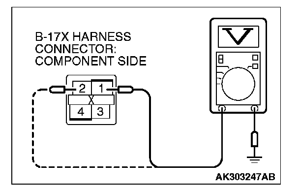 STEP 3. Measure the power supply voltage at MFI relay harness side connector B-17X.