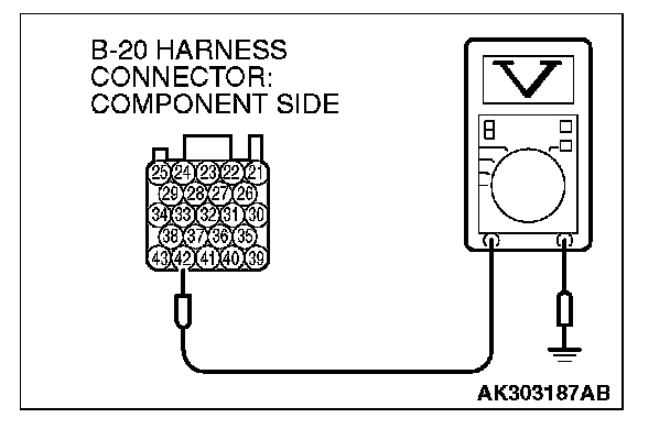 STEP 6. Measure the backup power supply voltage at PCM harness side connector B-20.