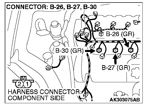 STEP 13. Check harness connector B-27, B-26, B-30 at left bank injector for damage.