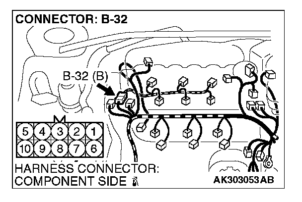 STEP 12. Check harness connector B-32 at intermediate connector for damage.
