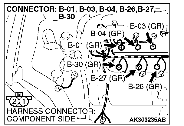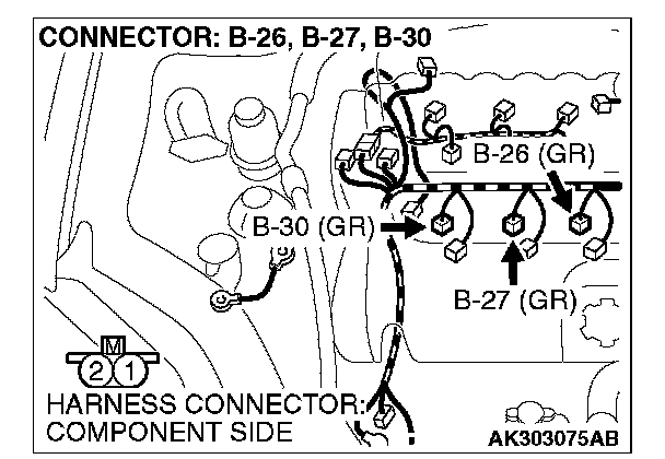 STEP 12. Check harness connector B-27, B-26, B-30 at left bank injector for damage.