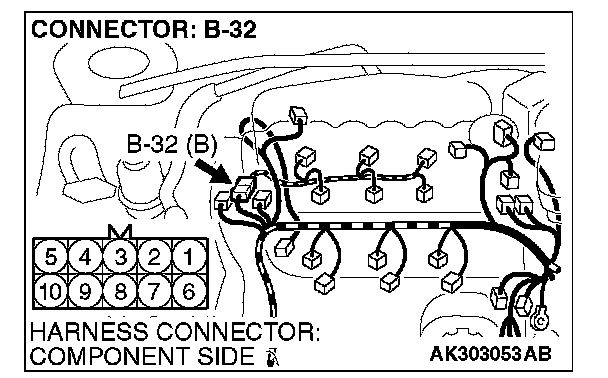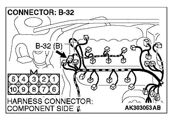 STEP 11. Check harness connector B-32 at intermediate connector for damage.