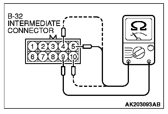STEP 8. Check the right bank injector resistance at intermediate connector B-32.