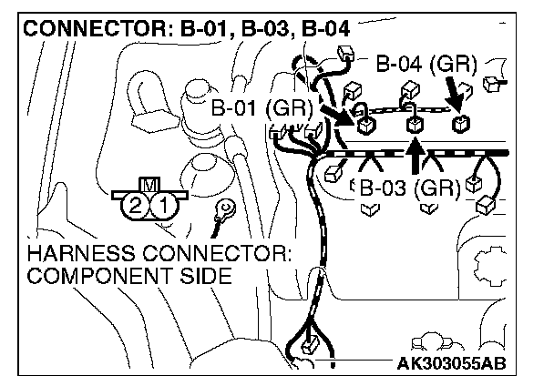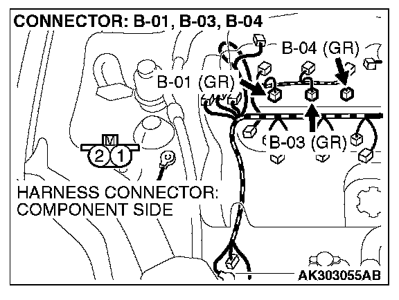 STEP 10. Check harness connector B-03 or B-04 or B-01 at right bank injector for damage.