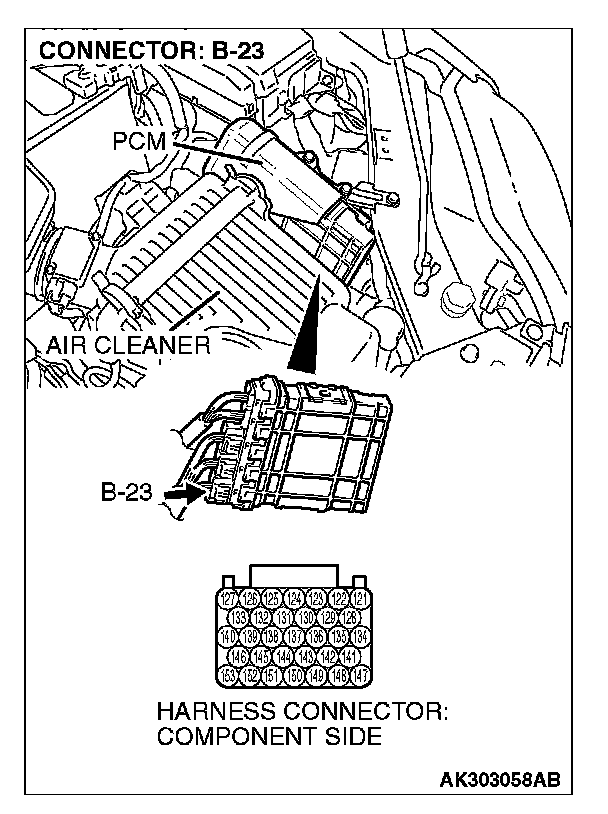 STEP 13. Check harness connector B-23 at PCM for damage.