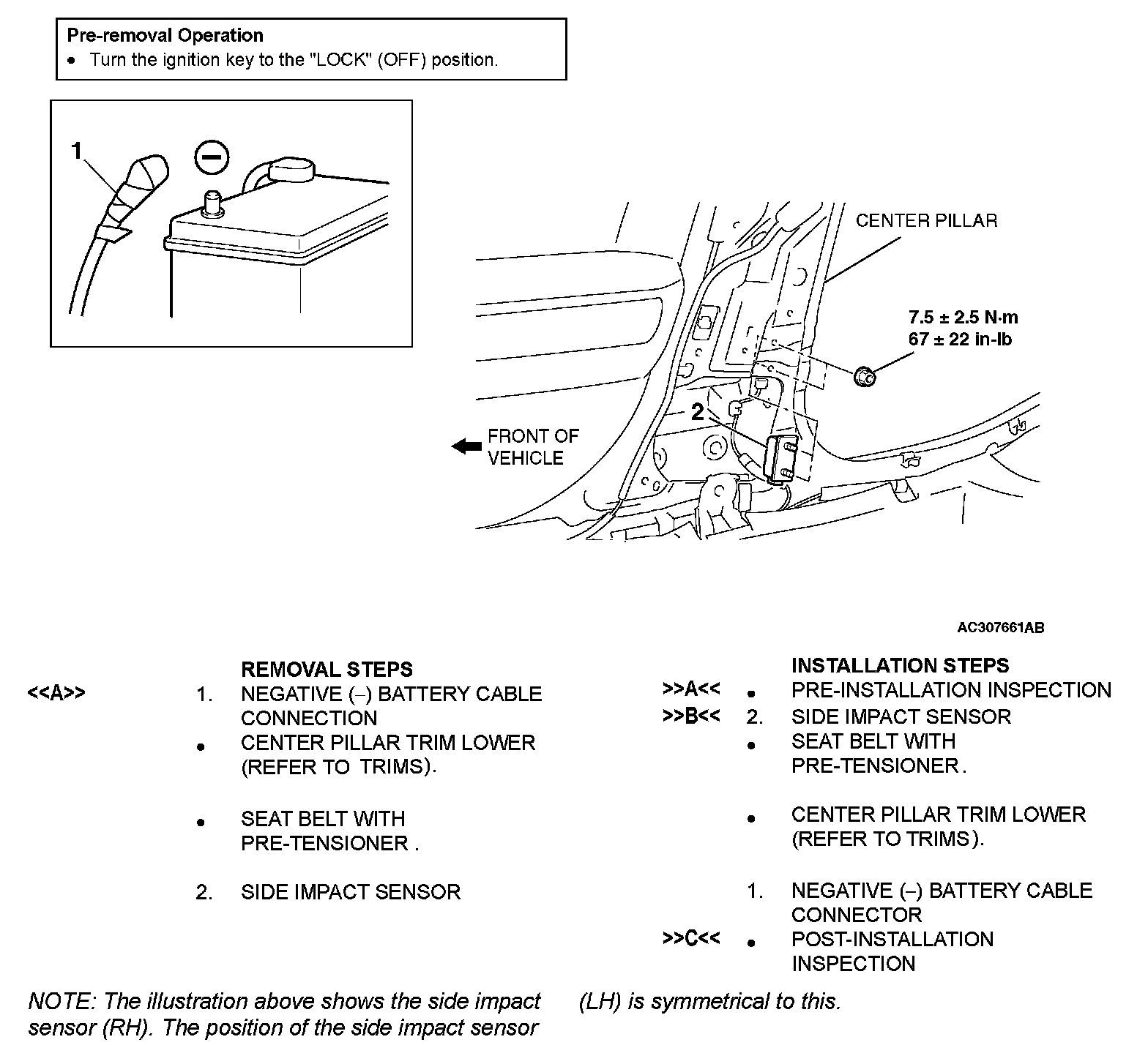 SIDE IMPACT SENSORREMOVAL AND INSTALLATION