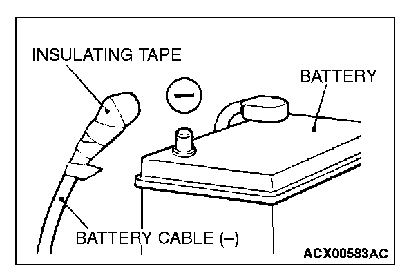 Disconnect the negative (-) battery cable from the battery and tape the terminal to prevent accidental connection and air bag deployment.