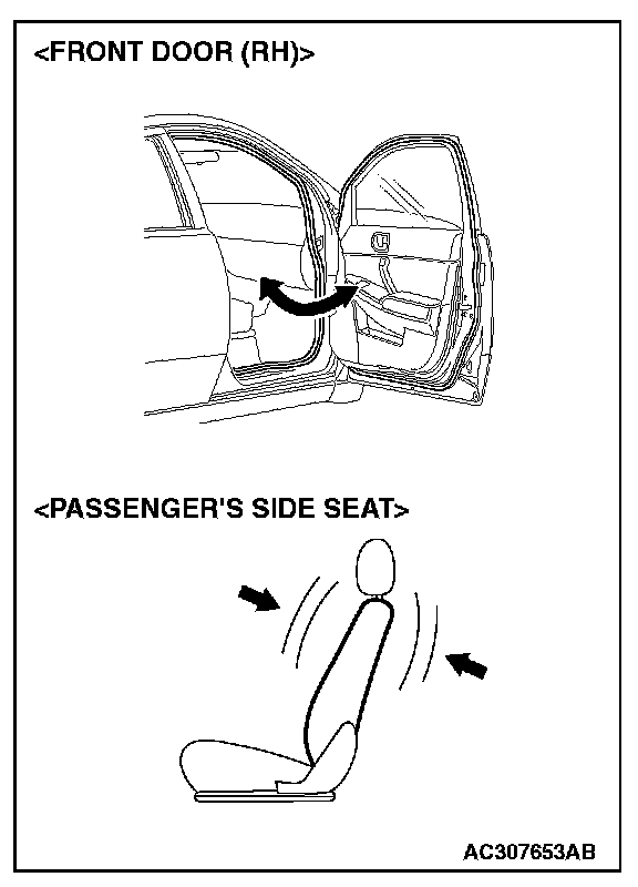 2. Open and close the front door (RH) 5 times hardly to remove the friction. And if the door does not open and close smoothly after the impact, hit the front and rear sides of seatback about eight times each to remove the friction.