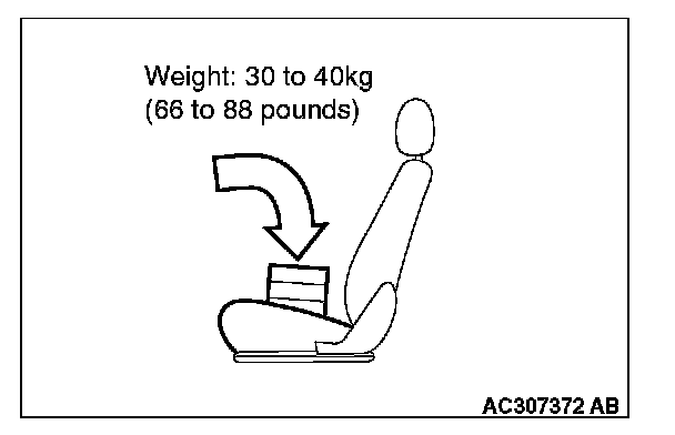 4. For accuracy check 30 kg (66 pounds), slide the seat to the front end, and put the 30 kg (66 pounds) weight on the center of the seat cushion. Then, carry out the friction removal in step (2) and press the OK button to execute accuracy check.