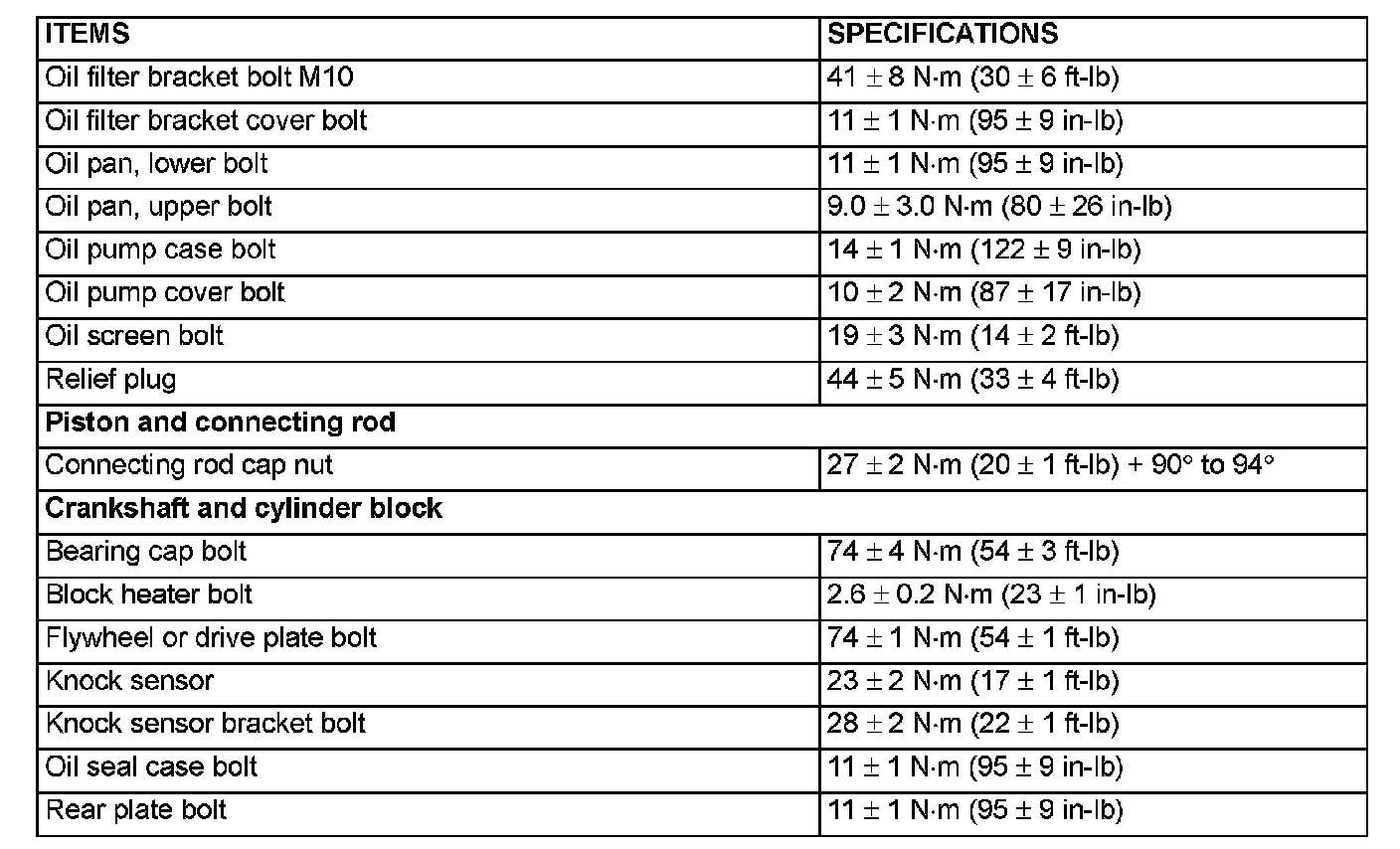 Fastener Tightening Specifications