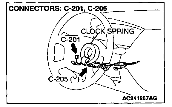 2. Disconnect the clock spring connector C-205.