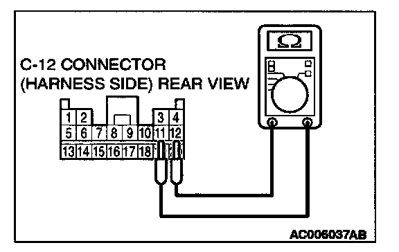 4. Check for continuity between C-12 harness connector terminals 11 and 12.
