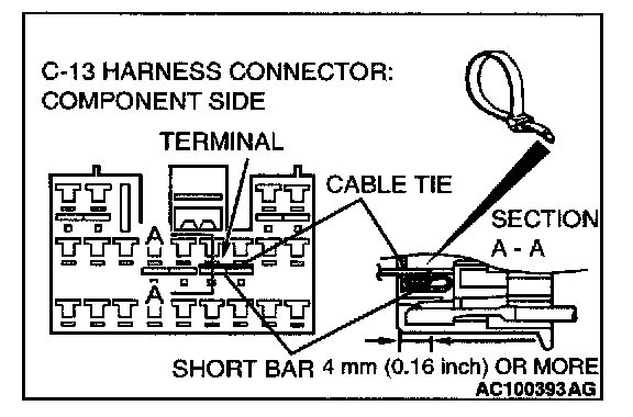 CAUTION: Insert an insulator such as a cable tie to a depth of 4mm (0.16 inch) or more, otherwise the short bar will not be released.