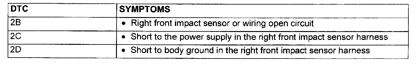 DTC 2D Front impact sensor (RH) short-circuited to groundFront Impact Sensor Circuit Part 1: