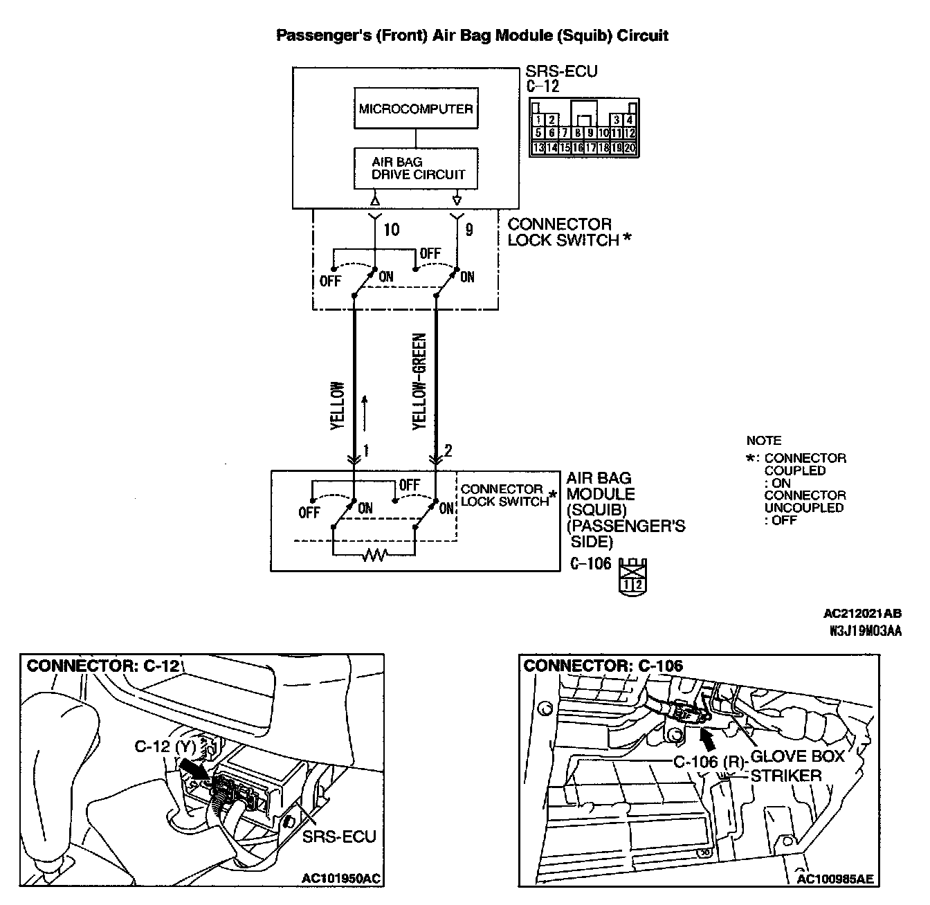 2. Unclip passenger's air bag module connector C-106.