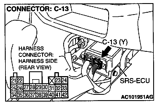 1. Disconnect SRS-ECU connector C-13.