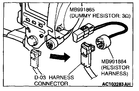 4. Connect special tool MB991884 to the D-03 harness connector.