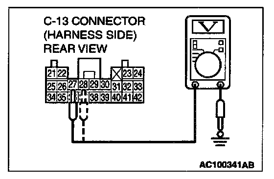 4. Measure the voltage between C-13 harness connector terminals 27, 28 and body ground.