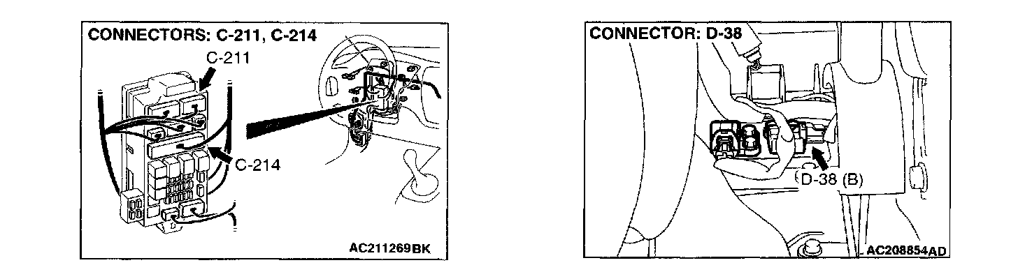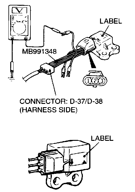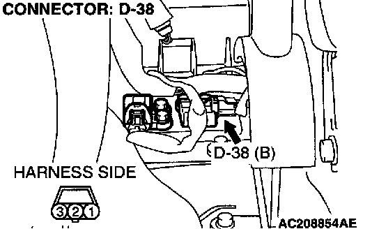 1. Disconnect connector D-38, and then connect special tool MB991348 between terminals of the disconnected connectors.