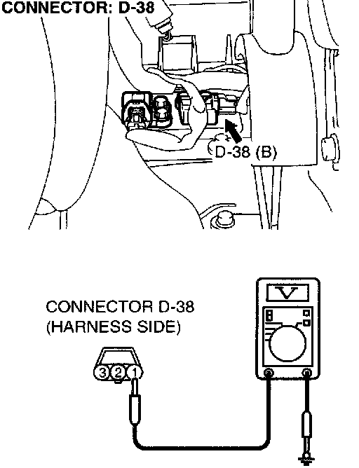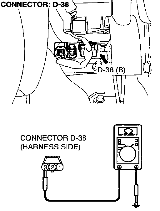 1. Disconnect connector D-38, and check at the harness side.