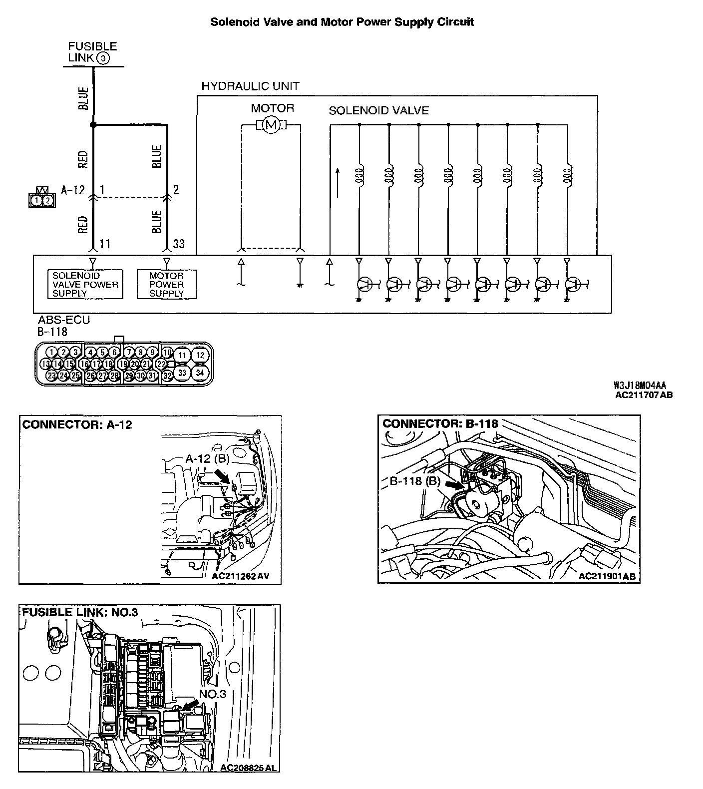 ^ The wire between fusible link No.3 and ABS-ECU connector B-118 (terminal 11)