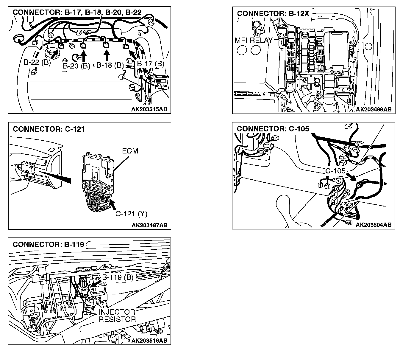 1. Disconnect the injector resistor connector B-119.