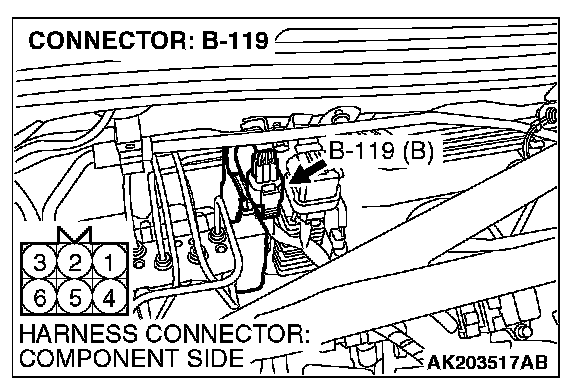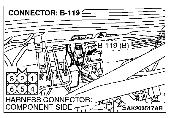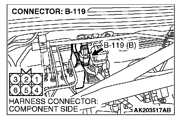 1. Disconnect the connector B-119 and measure the harness side.
