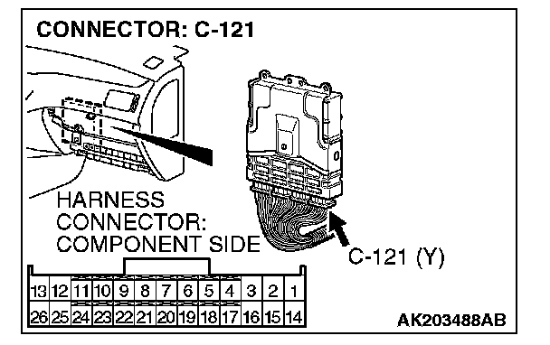 STEP 11. Check harness connector C-121 at ECM for damage.