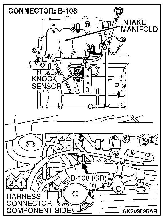 1. Disconnect the knock sensor connector B-108.