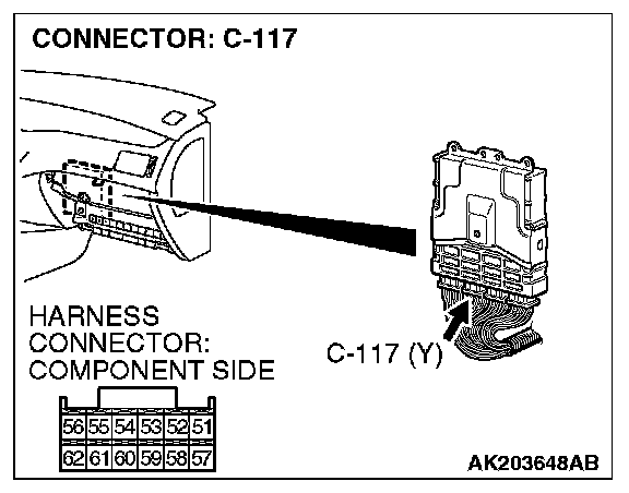 STEP 2. Check harness connector C-117 at ECM for damage.