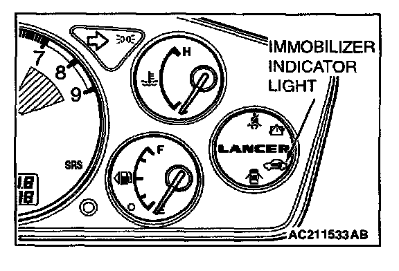 7. The immobilizer-ECU identifies the new key to accept or reject it, and operates the immobilizer indicator (See the table).