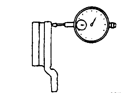 3. Place a dial gauge approximately 5 mm from the outer circumference of the brake disc, and measure the run-out of the disc