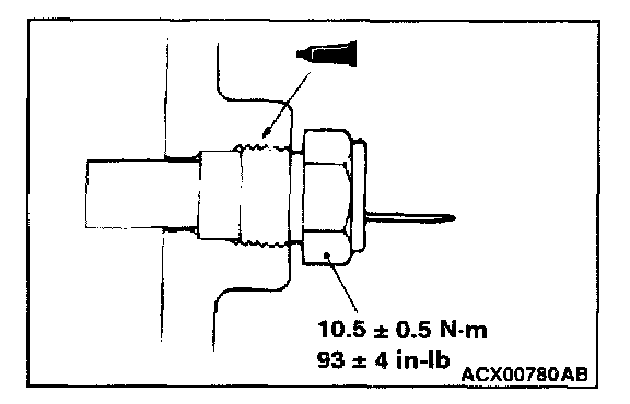 4. After inspection, apply specified sealant at threads of water temperature gauge unit, and tighten to the specified torque.