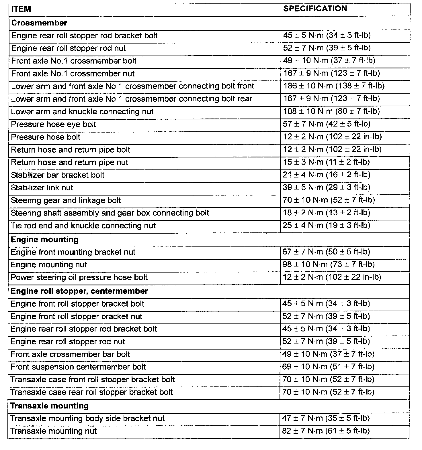 Engine Mount: Specifications