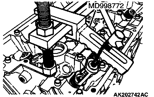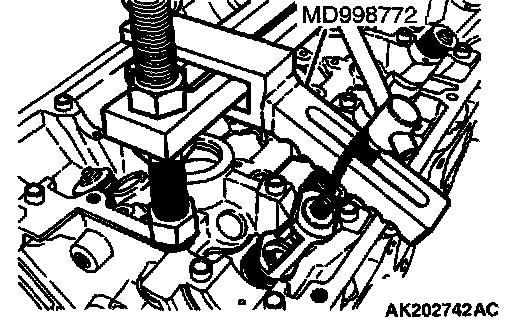 1. Using special tool MD998735 or MD998772, compress the retainer locks.