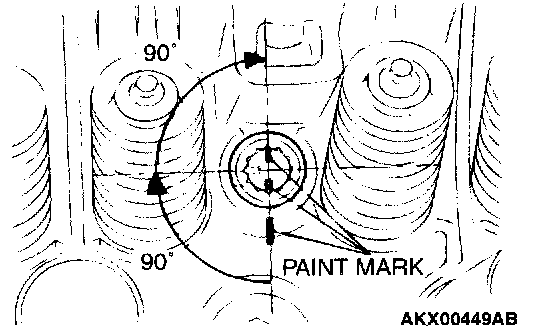 8. Tighten the bolts another 90 degree angle in the same order as in step 7, and check that the paint marks on the cylinder head bolt are aligned with the paint marks on the cylinder head.