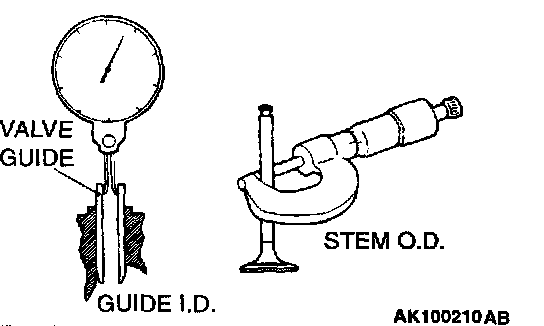 Measure the clearance between the valve guide and valve stem. If the clearance exceeds the specified limit, replace the valve guide or valve, or both.