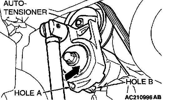 1. Securely insert the spindle handle or ratchet handle with a 12.7 mm (1/2 inch) insertion angle into the jig hole of the auto-tensioner, and turn the auto-tensioner counterclockwise until it hits the stopper.