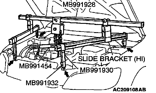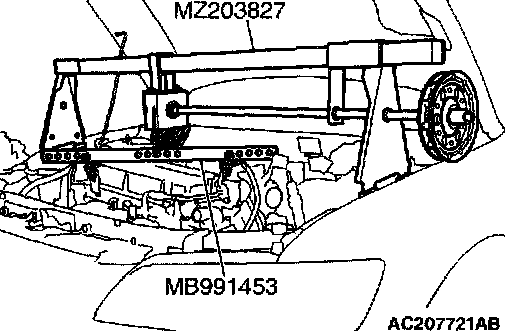 1. Pre-tighten the 2 bolts on the car to assemble the radiator support upper insulator to set the special tools MZ203827, MB991895 or MB991928.