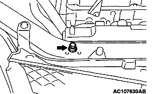 4. Place a garage jack against the engine oil pan with a piece of wood in between so that the weight of the engine assembly is no longer being applied to the engine front mounting bracket.