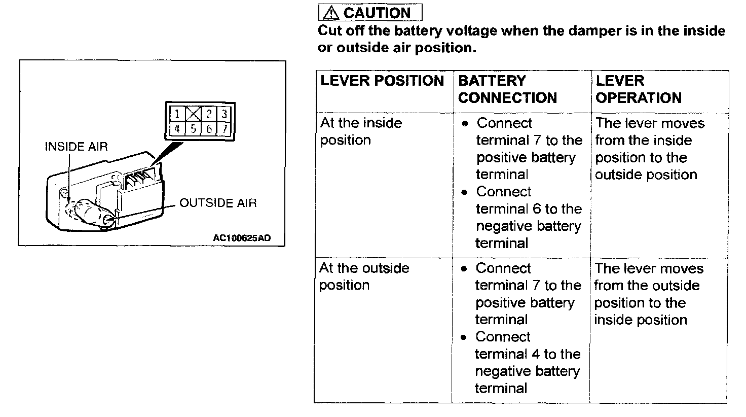 Outside/Inside Air Selection Damper Control Motor Check: