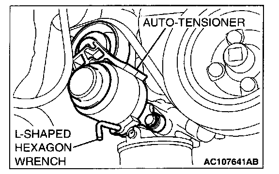 The following operations will be needed due to the serpentine drive system with the drive belt auto-tensioner.