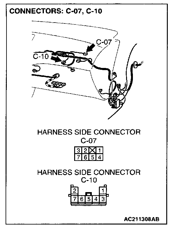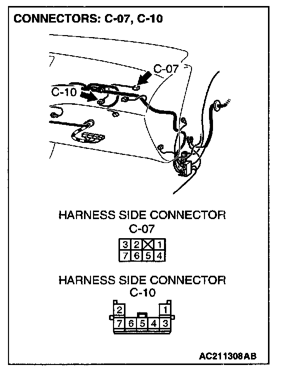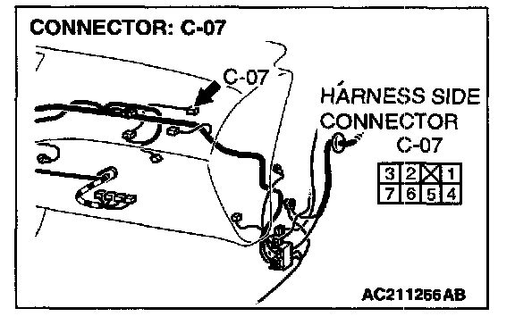 STEP 4. Check outside/inside air selection damper control motor connector C-07 for loose, corroded or damaged terminals, or terminals pushed back in the connector.