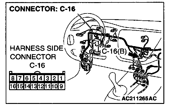 STEP 6. Check outside/inside air selection damper control motor connector C-07 and A/C-ECU connector C-16 for loose, corroded or damaged terminals, or terminals pushed back in the connector.