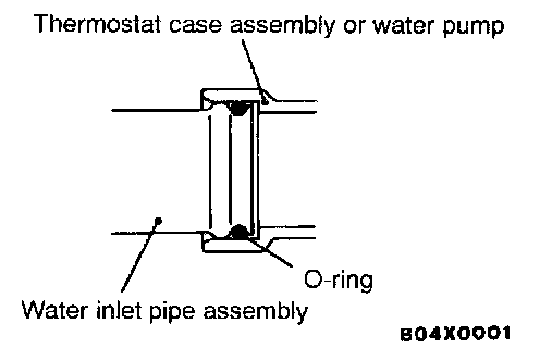 NOTE: Install the water outlet tiffing and thermostat case assembly within 15 minutes after applying liquid gasket.